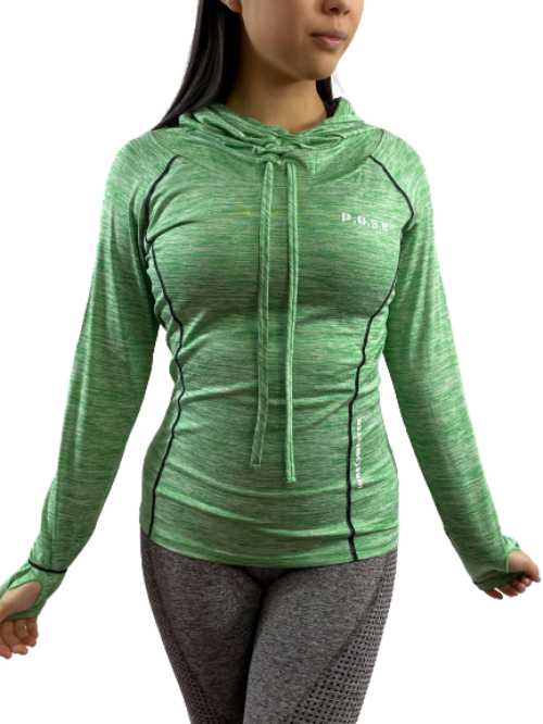 The P.O.S.E COMFORT LONG-SLEEVE TOP with HOODIE, is designed as the perfect addition to every activewear collection. Featuring a flattering long sleeve fit, and rounded crew-neck design with Hoodie, our COMFORT LONG-SLEEVE TOP, ensures maximum breathability and ultimate comfort from its moisture-wicking, and lightweight fabric. Pair with any of our leggings or shorts, for the perfect P.O.S.E activewear set! Breathable, QUICK DRY, Comfortable, Flexible, Stretchable material This top is designed with your comfort and performance in mind. Experience superior breathability thanks to the lightweight, moisture-wicking fabric, and quick-drying technology, while the flexible, stretchable construction allows for a great range of movement.