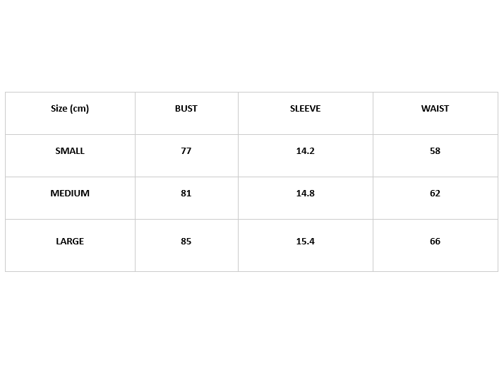| Size (cm) | BUST | SLEEVE | WAIST |