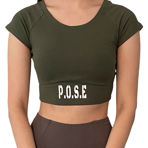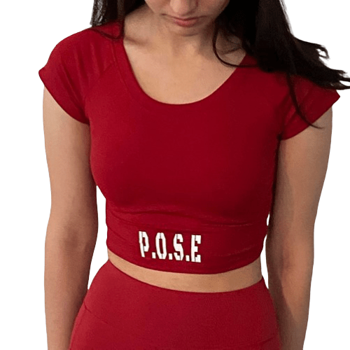 Our P.O.S.E Optimum Crop Top is the perfect midriff length for the gym, yoga, or Pilates.