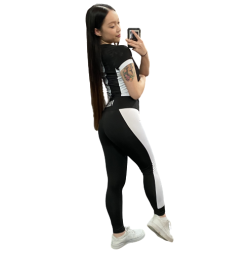 The Leggings are designed with white panelling and a thick waistband, our leggings are constructed with a two-tone nature to achieve maximum body definition.