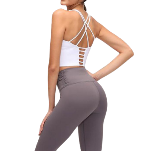 Our P.O.S.E Energise Crop Top features a round scooped neckline, cropped length, finished with double Criss cross strapping and detailing.